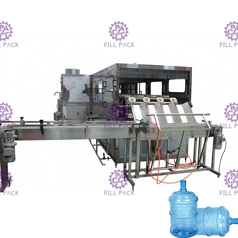 Beschrijving van 600BPH 5 Gallon bottelarijlijn voor grote flessen met roestvrijstalen behuizing