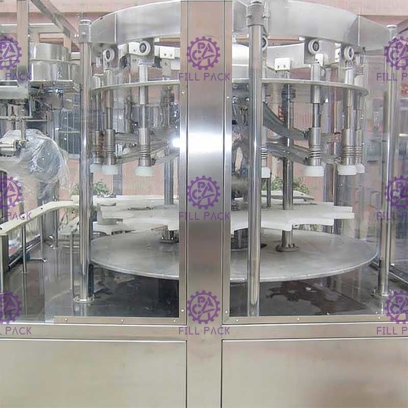 De mineraalwaterfles afvullijn wordt gebruikt voor de productie van niet-koolzuurhoudende dranken van mineraal-zuiver water verpakt in polyester flessen. Wassen, vullen en afdichten zijn geïntegreerd in één machine.