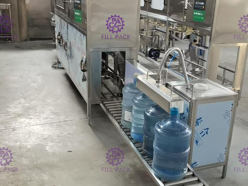 Dan zullen de kruiken worden geduwd door cilinder te duwen aan onder het vullen hoofd, dan vullend begin;