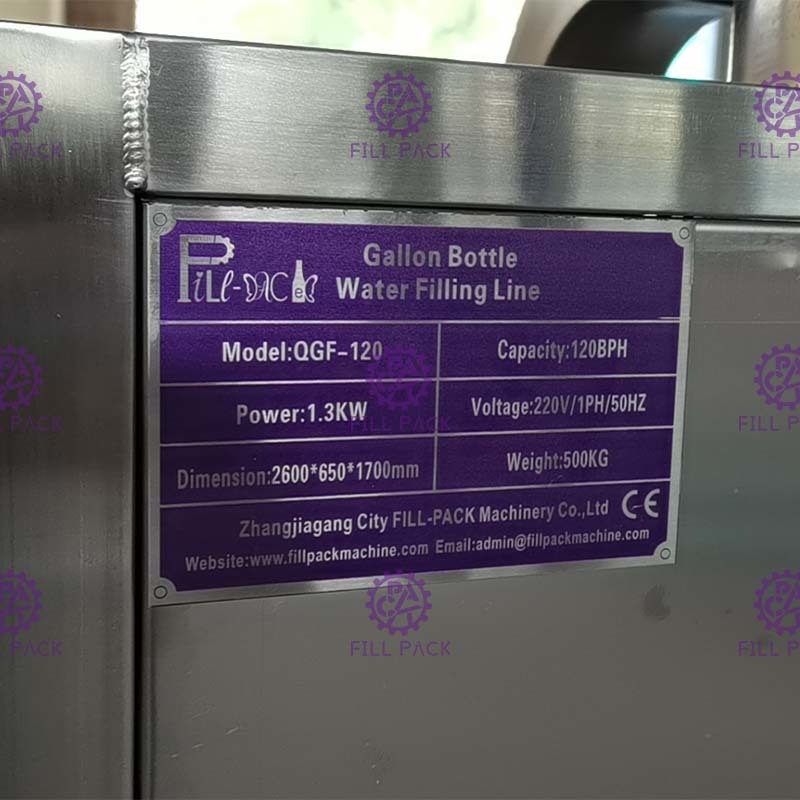 De hele vatenwaterafvullijn omvat semi-automatische ontdekselaar en wasmachine, Monoblock spoel-vul-sluitmachine, Roller transportband, Labelkrimptunnel, Controlelamp, Solid Ink Roll Codeermachine